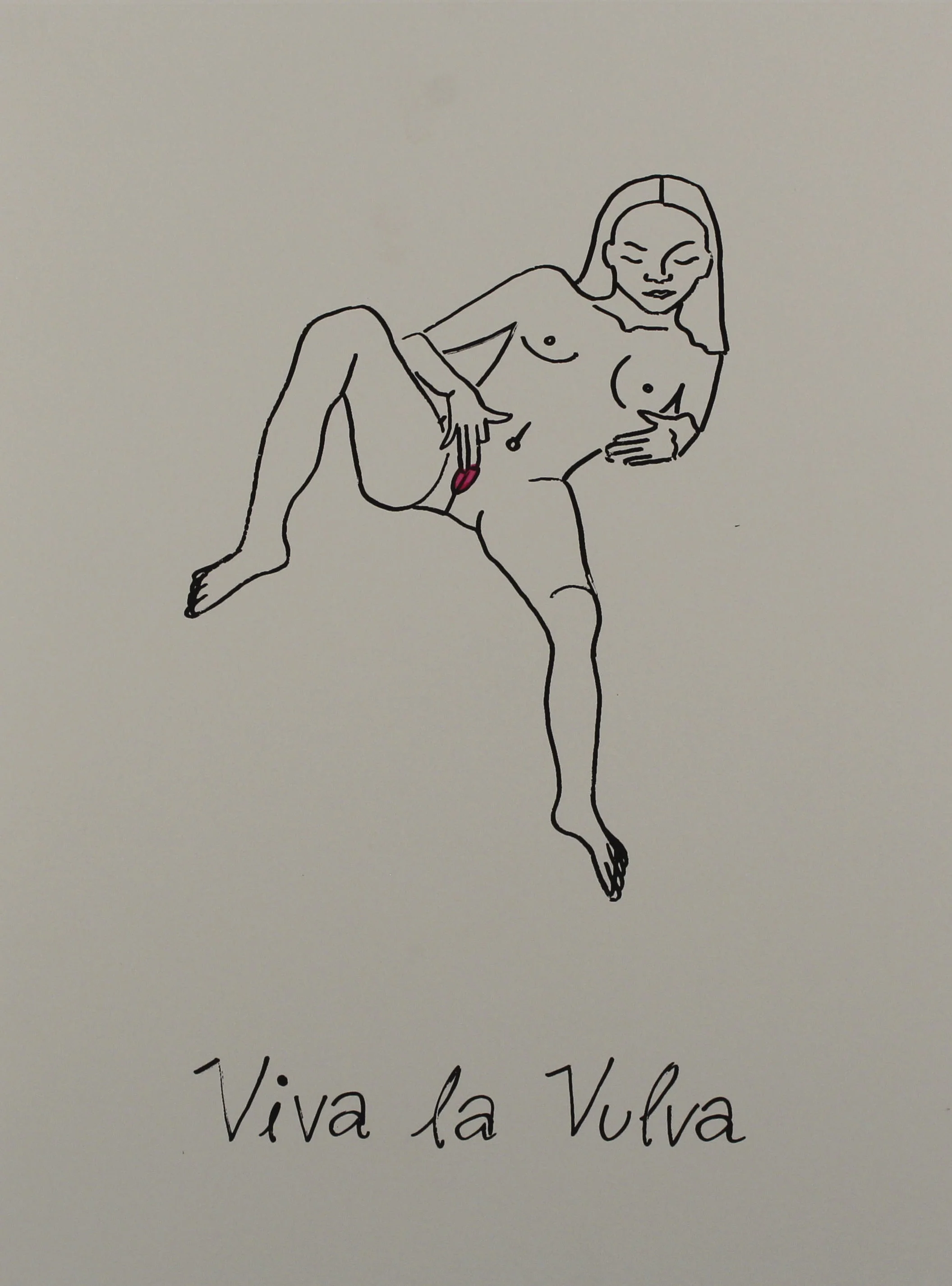 “This silkscreen print was made as a gift for a dear friend on her birthday and was inspired by all the women who practice self-love, both physical and emotional. While the piece resonated with that specific friend, the artist would like to acknowledge that not all vulvas are pink, nor do all female identifying people have vulvas.”